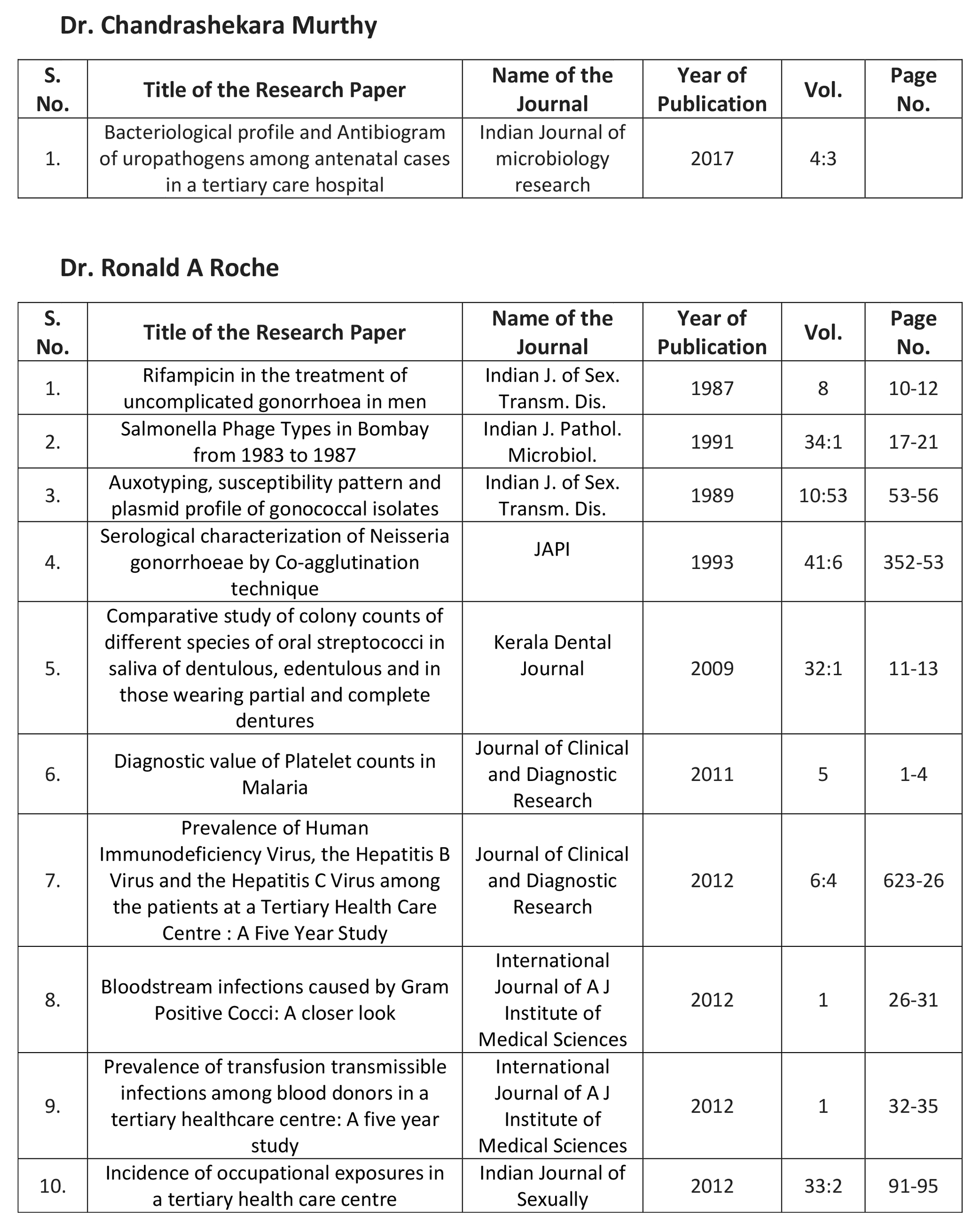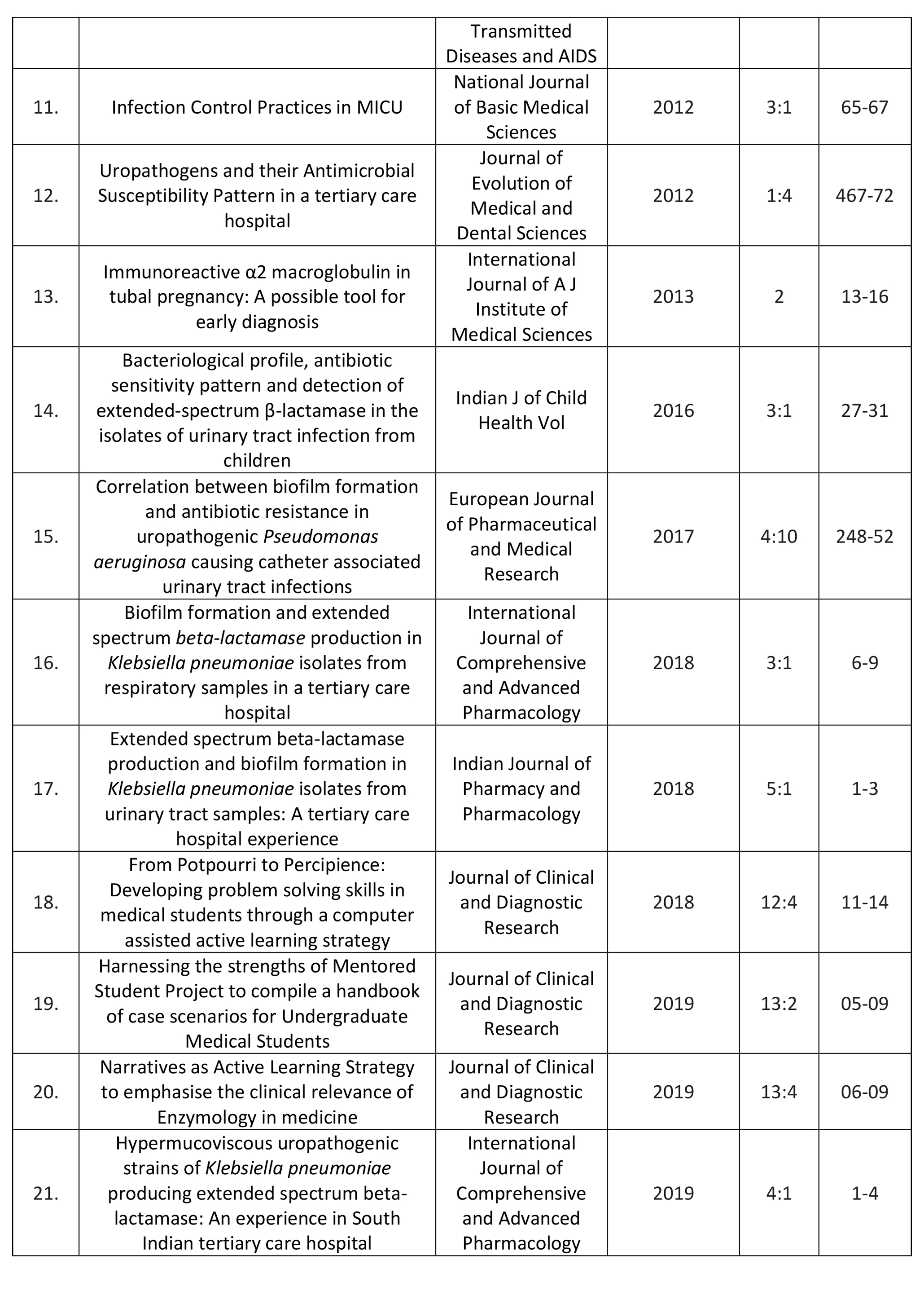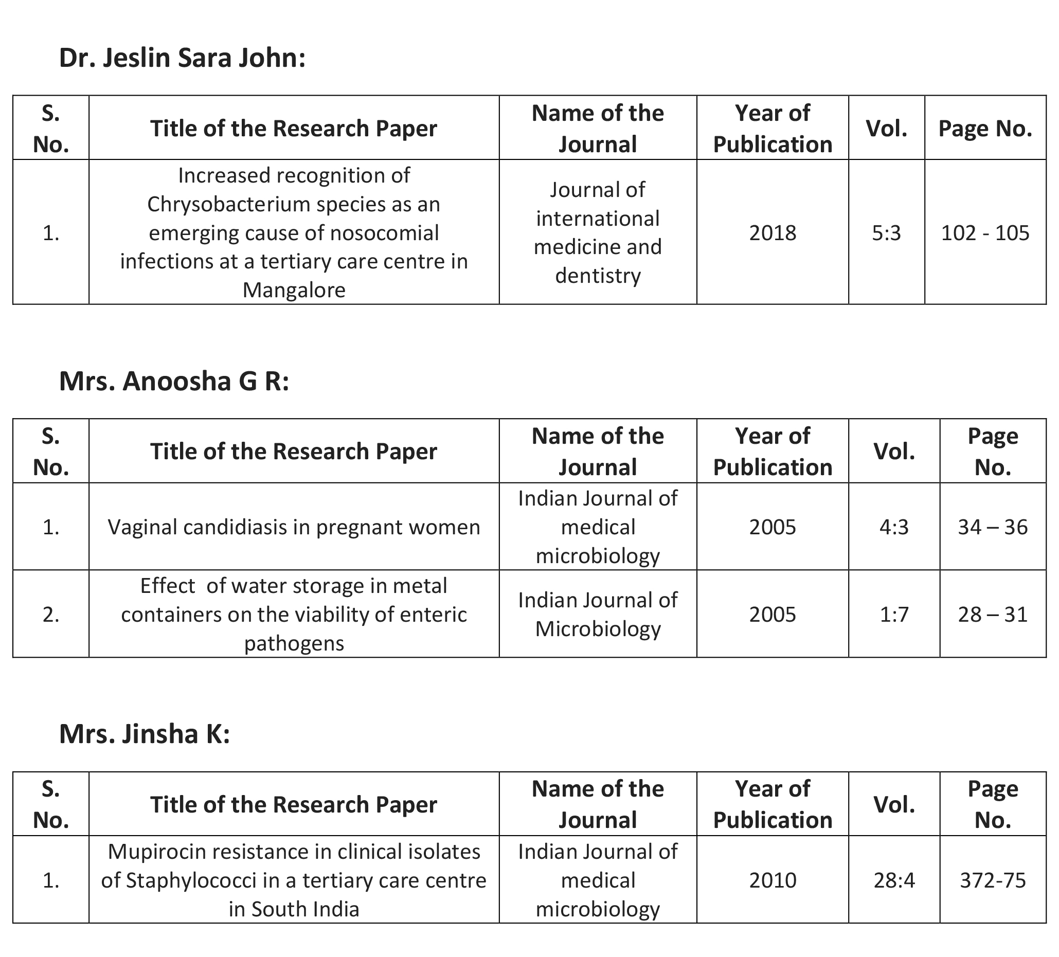 The publications in national and international peer reviewed journals by the faculty of microbiology include the following.