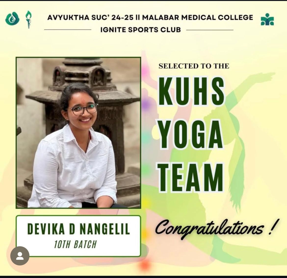 - KUHS Yoga Women Champions in the year 2016, 2019 - Runner Up in 2017 & 2018.