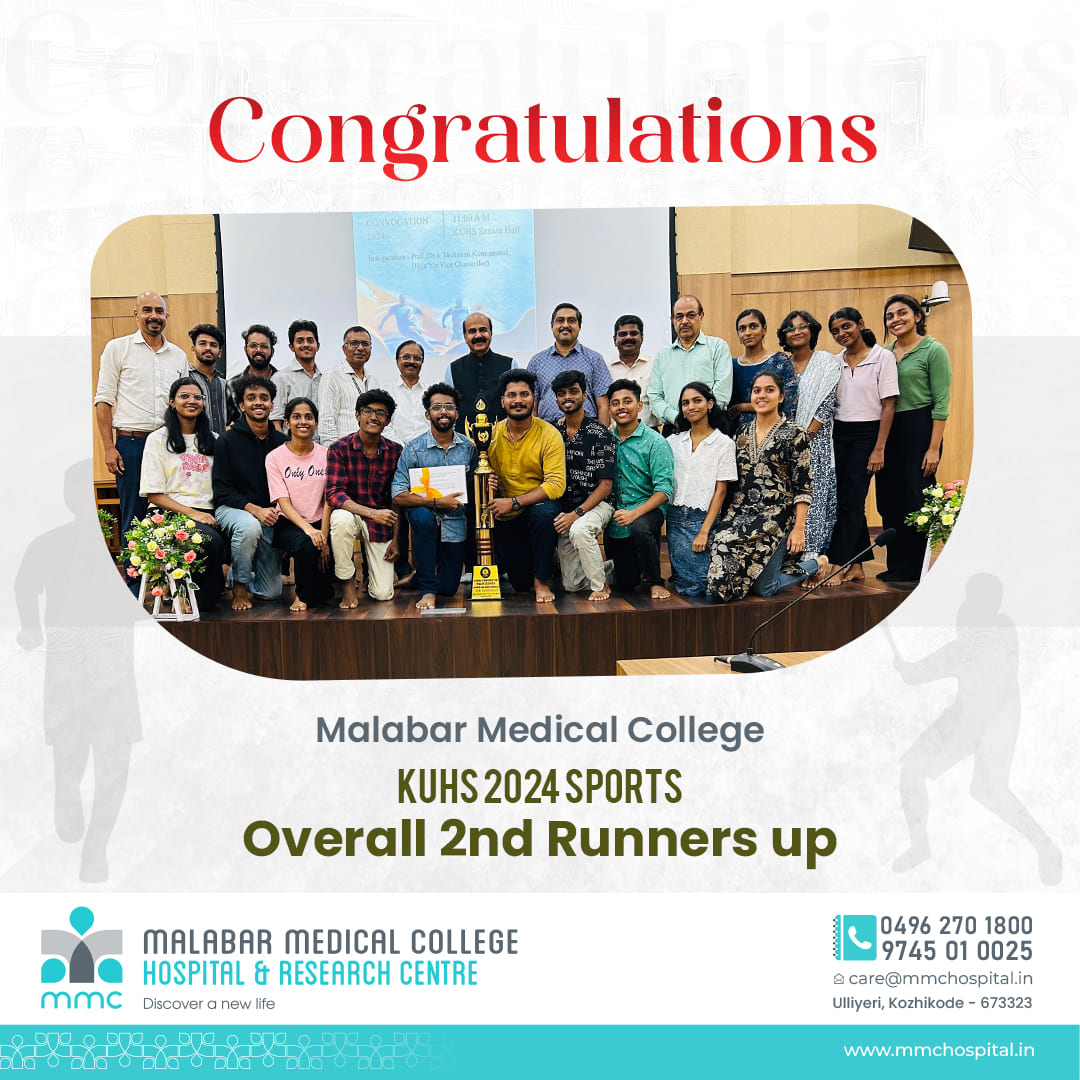Apart from Academics, Malabar Medical College Students are outstanding performers in Sports and athletics. We had been the Overall University Champions continuously for three years in 2014-15, 2015-16 and in 2016-17 and Runner Up in 2017-18. Some of our achievements in National and State Level Championships are mentioned below.